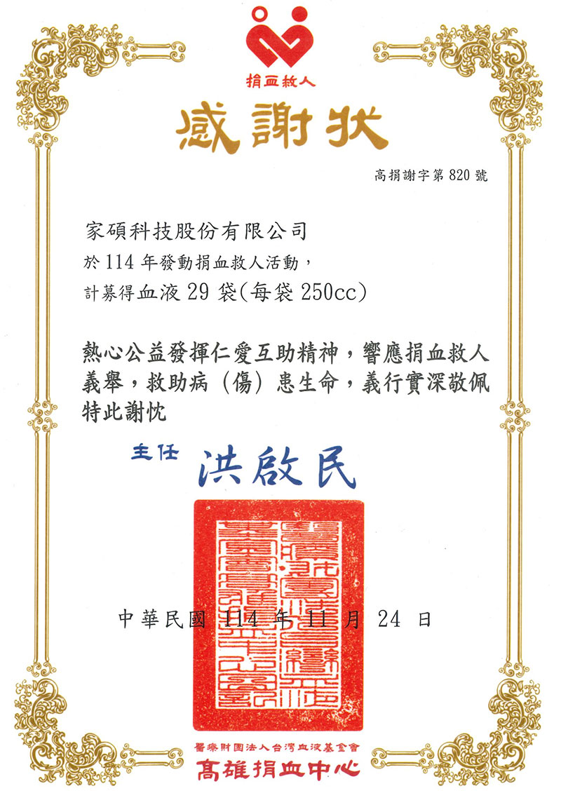 企業的力量來自員工的行動,捐血雖是小小舉動,卻能在緊急時刻挽救無數生命。我們對每一位挽袖相助的同仁表達最深的感謝,也會持續推動健康與公益並行的企業文化,以行動傳遞善意,讓「熱血」不只是活動,更是溫暖社會的力量。